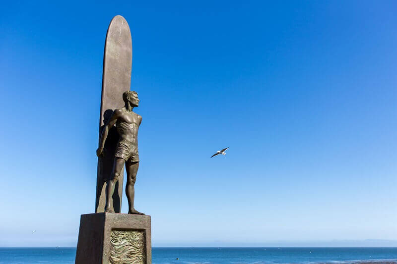 Continúa tu recorrido a pie entre acantilados y brisa marina hasta llegar a la icónica estatua del surfista, un símbolo que mira hacia el horizonte de Monterey Bay. A lo largo del camino disfrutarás vistas panorámicas del histórico muelle Santa Cruz Wharf. No puedes irte sin probar un tradicional clam chowder (sopa de almeja).