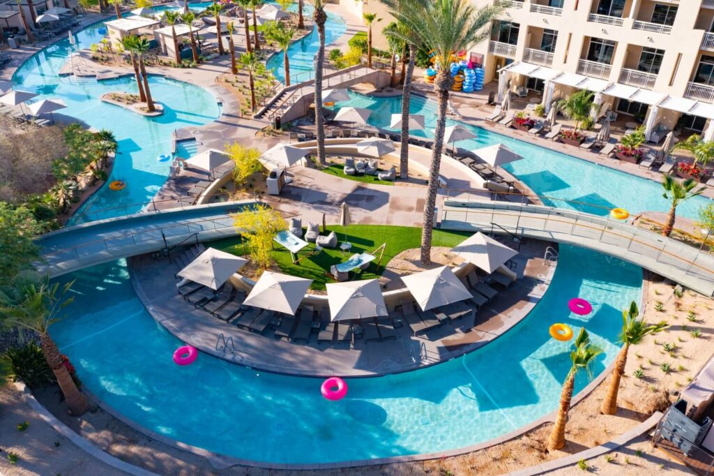 Por variedad, no nos vamos a detener. Por eso, te compartimos aquí, algunas de las opciones más destacables: En Phoenix, el Arizona Grand Resort & Spa será tu patio de juegos con Oasis, su parque acuático, que cuenta con tres toboganes. A su vez, el Hilton Phoenix Resort at The Peak – River Ranch Water Park se luce con piscinas, tobogán acuático, río lento y cascadas, mientras que el JW Marriott Desert Ridge Resort & Spa destaca por sus tres albercas, ríos artificiales y río lento.